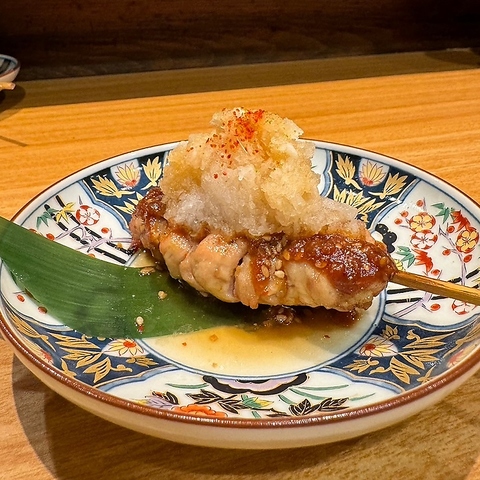 鮮度が命の鶏レバーと、表面を香ばしく炙った胸肉のたたきを贅沢に盛り合わせた鶏料理専門店ならではのひと皿◎ねっとりと舌の上で濃厚に広がるレバーの甘みと、しっとり瑞々しく弾ける胸肉の清涼感。対照的なふたつの味わいがお互いを引き立て合う極上の酒肴です。