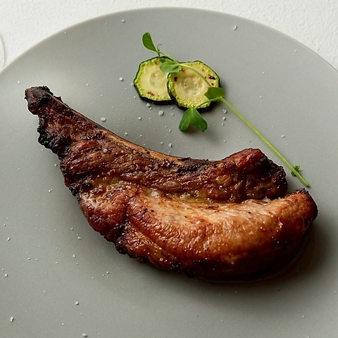 国産豚のスペアリブを トリュフ塩でどうぞ。赤ワインとのマリアージュをお愉しみください。