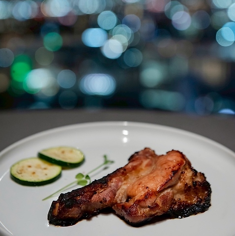厳選された国産豚をじっくりと調理した、ボリューム満点の一品です。一口食べれば、トリュフ塩の芳醇な香りが口いっぱいに広がり、お肉の旨味を最大限に引き立てます。ジューシーなスペアリブは、重厚な赤ワインやしっかりとした味わいの日本酒とも好相性◎夜景を背景に楽しむ贅沢なメインディッシュです。