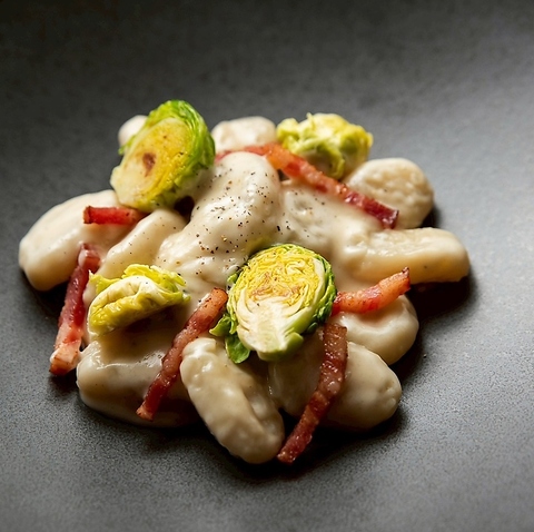 ソムリエが厳選するお酒のお供に欠かせない人気メニュー◎芽キャベツの甘みとゴルゴンゾーラの風味が相性抜群。天空のバーカウンターで、プロが選んだ一杯と共にゆったりと味わいたい、素材の良さが光る逸品です。