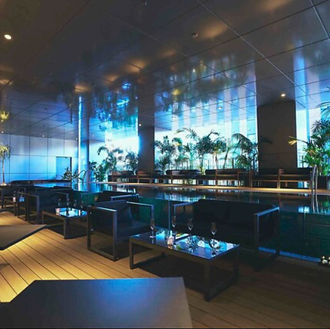 水面きらめくプールサイド特等席。都心とは思えない、リゾートのような開放感。非日常を味わう、最も人気のシグネチャーシート。