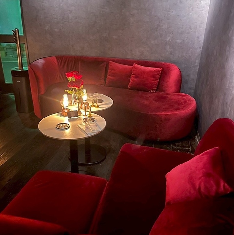 当店は、最大14名様までの貸切が可能です!黒と赤を基調としたシックな店内は、落ち着いた雰囲気を醸し出し、シャンデリアが高級感をさらに引き立てています。特別なイベントや集まりにぴったりの空間で、心地よいシーシャの時間をお過ごしいただけます。大切な人との特別なひとときを、ぜひ当店で◎