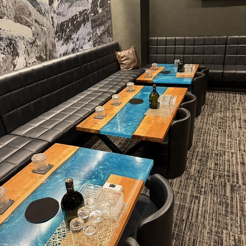 開放感あふれる広々としたテーブルフロアは、大人数でのご宴会やカジュアルな2次会にぴったりです。美しく整えられたインテリアが、お集まりの席をより一層華やかに引き立てます。こだわりのお酒とラグジュアリーな雰囲気に包まれながら、皆様で賑やかに語り合う至福の夜をお楽しみいただけます。