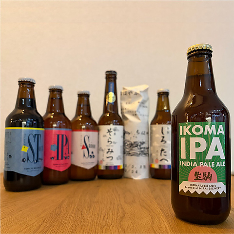 未来醸造所・大和醸造・GoldenRabbitBeerと生駒・奈良のクラフトビールが楽しめます。店内では3つのビアタップをご用意、飲みくらべもできます!