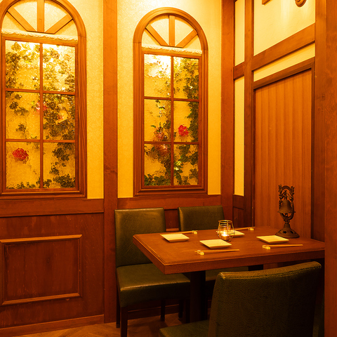 4名様からご利用いただけるテーブル席は、お仲間との飲み会や小規模な宴会にぴったり♪温かみのある内装に囲まれ、周囲を気にせず会話が弾みます。コース料理を囲みながら、居心地の良い空間でおいしいお酒とお食事を存分にお楽しみいただけるお席です。