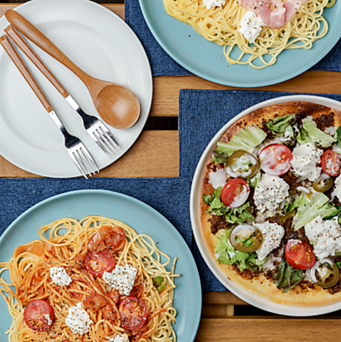グリークヨーグルトを、食事としても美味しく楽しんでいただきたいという想いから、ピザやベーグル、オープンサンドといったフードメニューをご用意しています。使用しているグリークヨーグルトは、砂糖を使わず、時間をかけて水分を丁寧に切った自家製。濃厚でありながら後味は驚くほど軽く、コクと風味が豊かな味わいです。