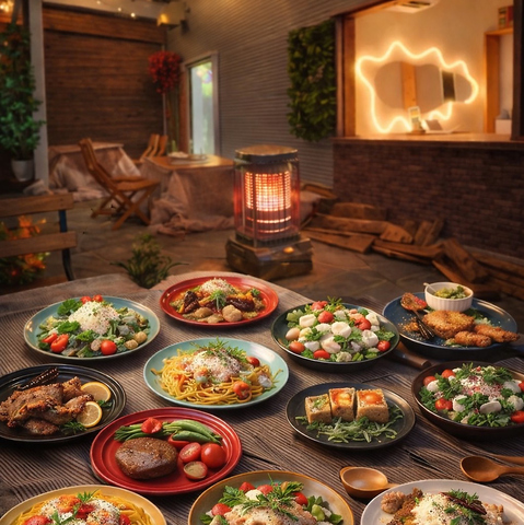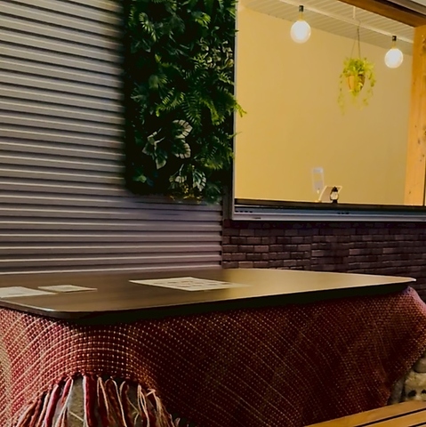 【テラステーブル席】テラス席は暑さ対策や寒さ対策もバッチリ◎冬は暖房とこたつのお席もございます!お友達との女子会やご家族での団らんにぴったりです♪