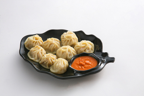 スパイスで味付けしたひき肉や野菜を薄い生地で包んで蒸した餃子風の料理。スパイシーなソースと一緒に楽しみます。