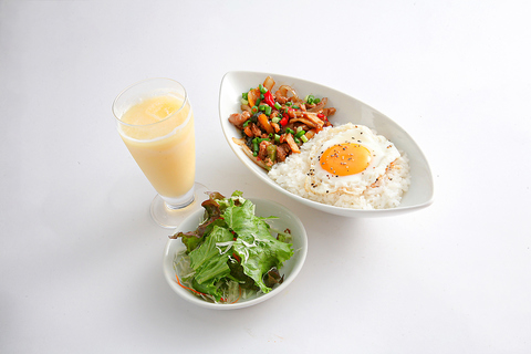 挽き肉とバジルをスパイスで炒め、ご飯に乗せたタイ料理。ピリ辛風味とバジルの香りが特徴で、目玉焼きを添えることが多いです。
