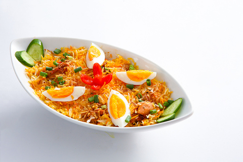 チキンビリヤニは、スパイスで味付けした鶏肉とバスマティライスを炊き込んだ料理。鶏肉の旨味とスパイスが調和した一品です。/スパイスで味付けした野菜とバスマティライスを炊き込んだ料理。野菜の甘みとスパイスが絶妙に調和しています。※画像はチキンビリヤニです