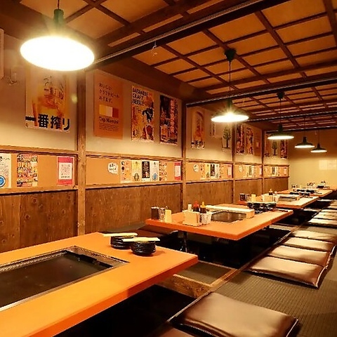 少人数の飲み会はもちろん、大規模な団体様も大歓迎です。2階席は最大56名様まで収容可能で、会社宴会や打ち上げ、地域のお集まりなど幅広いシーンに活用いただけます。広々としたレイアウトの掘りごたつ席もあり、足を伸ばしてリラックスしながら自慢の鉄板料理を楽しめるのが特徴。一体感のある宴会を叶えるなら、ぜひ当店へ。