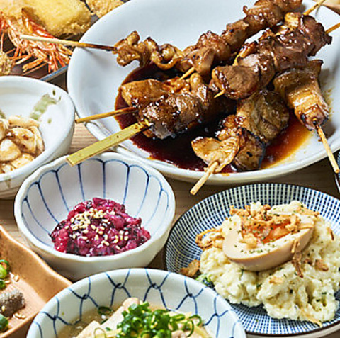 熟練のスタッフが一本ずつ丁寧に手仕込みした厳選食材を、強火で一気に焼き上げます★外はカリッと香ばしく、中は驚くほどジューシーな肉汁が凝縮されています◎甘辛く濃厚な特製ダレ、素材の味を引き立てるキリッとした塩、深みのある味噌からチョイス♪一本から注文可能なので、お酒のお供に何本でもいけちゃう美味しさ★