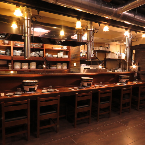 目の前で七輪が香ばしく立ちのぼる特等席。鉄板では味わえない炭火の臨場感を、カウンターならではの距離感で存分に楽しめる大人の贅沢空間です。