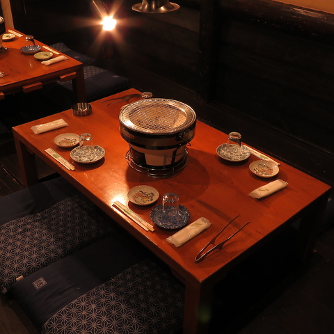ゆとりある4名席テーブルは、会話が弾むちょうど良い距離感。仲間や家族と気兼ねなく焼肉を楽しめ、落ち着いた空間でゆっくり食事を味わえる人気のお席です。
