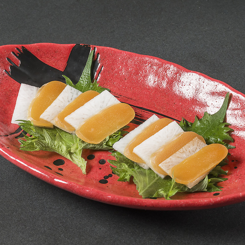 絶妙な塩気のカラスミと、みずみずしい大根。お酒が止まらなくなる逸品です。