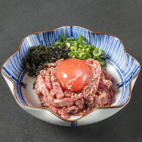 新鮮な和牛の旨みを、濃厚な卵黄がとろりと引き立てます。お酒との相性も抜群な、当店自慢の逸品です。