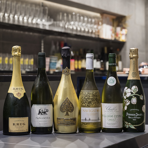 22時からはBAR営業も。シャンパンやウイスキーなど、豊富なラインナップが特別な夜を華やかに彩ります。