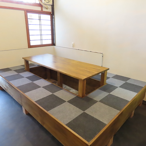 足を伸ばして寛げるお座敷。市松模様がモダンなお座敷席は、最大6名様~8名様まで利用可能。靴を脱いでリラックスできるため、女子会や少人数の飲み会におすすめです。我が家のように寛げる特等席です。