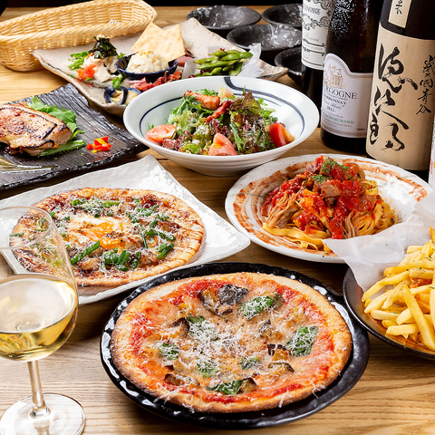 絶品肉料理、こだわりのピザ、パスタ、デザートなどをご用意♪京都の野菜を使用したメニューも♪絶品料理をリーズナブルに♪また、飲み放題の種類も充実したラインナップ♪