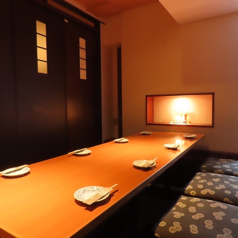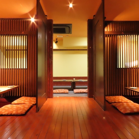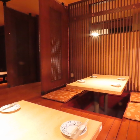 【様々なタイプの個室完備】掘りごたつ個室やお座敷タイプ個室は、お履物を脱いで足を伸ばしてゆったりくつろげる空間です。ご家族でのプライベートなお話やハレの日のお祝いも、大切な接待やお打ち合わせ等のビジネスシーンにも大変重宝します。厳選された食材に夜お料理とお酒を存分に愉しむ上質な時間をお過ごし下さい!