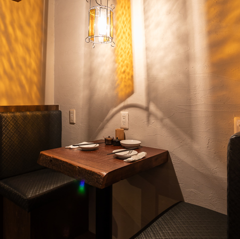 隠れ家のような情緒漂う個室。柔らかな照明と木の温もりに包まれ、新宿の喧騒を忘れゆったりと寛げます。