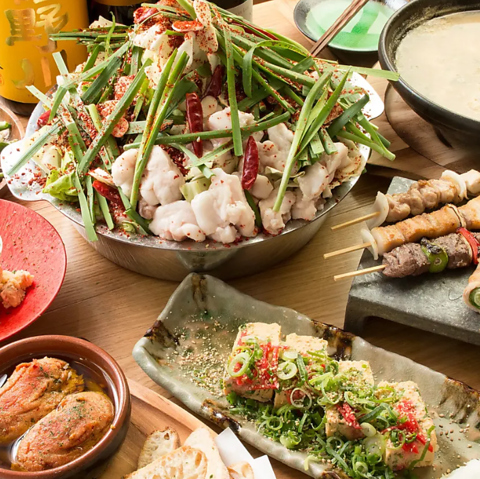 当店のメインプランです。たっぷり7品!自慢の選べる「博多もつ鍋」と「博多串焼き」ついた大満足プランです。