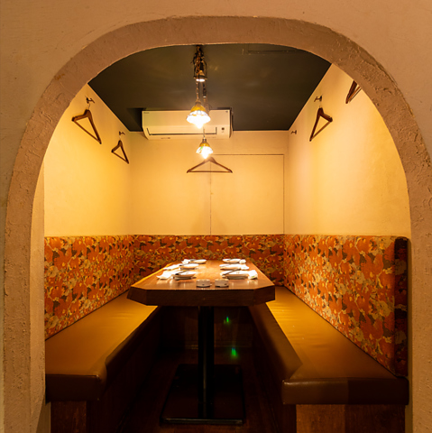 隠れ家のような情緒漂う個室。柔らかな照明と木の温もりに包まれ、新宿の喧騒を忘れゆったりと寛げます。