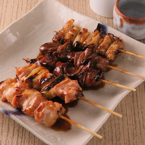 毎日丁寧に手打ちして仕上げています。肉は柔らかくてジューシーな宮崎県産の鶏肉を使用しています!こだわりの焼き鳥 をぜひ一度お試しください!ねぎ肉・鳥もも肉・かわ・すなぎも・レバーの5種をご用意しております。