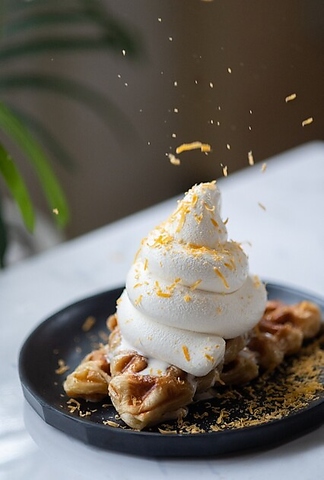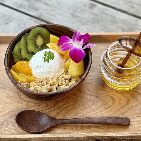 バターの芳醇な香りが広がるクロッフルは、外はサクッと中はもちもちの対比が魅力です。丁寧に下処理を施した旬のフルーツやソースを添えて、華やかな一皿に仕上げました。お洒落なテラス席は、友人との語らいやデートの締めくくりにもぴったりです。こだわりの珈琲と共に、五感で味わう感動のひとときを心ゆくまでお過ごしください◎