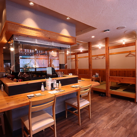 優しい大将と楽しいお話も交えて食事ができるカウンター席!目の前で調理を見ることもできます♪お一人様でお仕事帰りのサク飲みや、初めてご来店の方も是非お気軽にご来店ください!