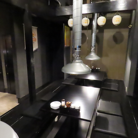 黒を基調とした落ち着き空間でゆったり焼肉。排煙設備付きで快適に食事を楽しめます。