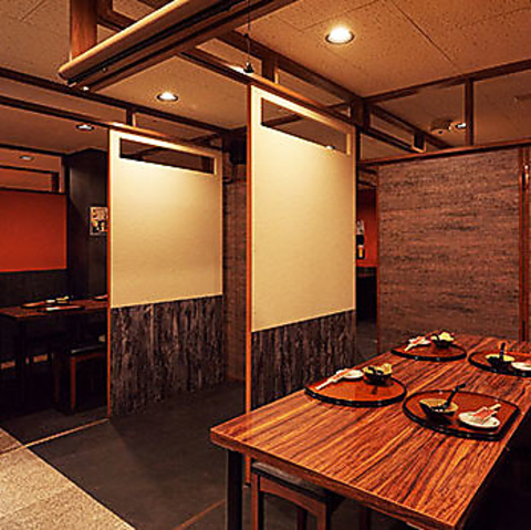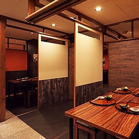 1階とは打って変わり、落ち着いてお食事ができる空間◎4名様から利用可能な個室を完備しており、ご家族での夕食や大切なご接待、女子会などプライベートなシーンに重宝します♪木の温もりを感じる内装は、ついつい長居したくなるような心地よさ◎周囲を気にせずゆっくりと会話を楽しめるので、特別な日のディナーにも最適!