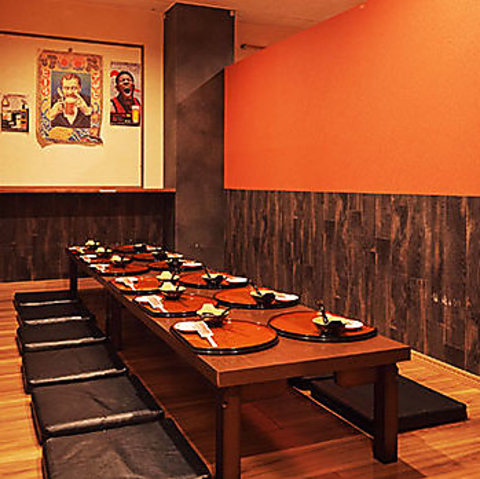 「屋台風酒場」をコンセプトにした1階は明るく活気あふれる空間が広がっています◎お仕事帰りにふらっと立ち寄りやすいテーブル席は、少人数での飲み会や0次会にぴったり♪モバイルオーダーを導入しているので、注文もスムーズで楽しめます。壁に並ぶ日本酒のボトルを眺めながら、炭火焼きの香ばしい香りに包まれるひととき