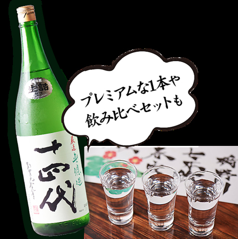 お料理の美味しさを引き立てる日本酒は、秋田の地酒を中心に全国から厳選した銘柄を約80種類ラインナップ◎定番の辛口からプレミアムな一本まで、初心者の方も通の方も満足いただける品揃え♪色々な味を試せる「飲み比べセット」や、時間を気にせず美酒に酔いしれる「無制限プレミアム飲み放題」もご用意◎至福のひとときをお過ごしください。
