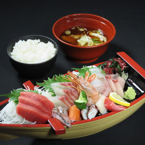 ランチも一切ぬかりなし!その日水揚げされた新鮮な魚介類をふんだんに使用した海鮮丼をはじめ、定番、ガッツリ、さっぱり、あっさりと皆喜ぶメニューが勢ぞろい!名物の刺身定食は生の本まぐろを使用した一品。その他、日替わり定食も実施中!