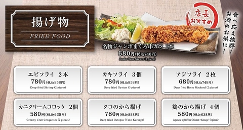 海鮮揚げから定番のから揚げなどビールとの相性抜群の一品です♪
