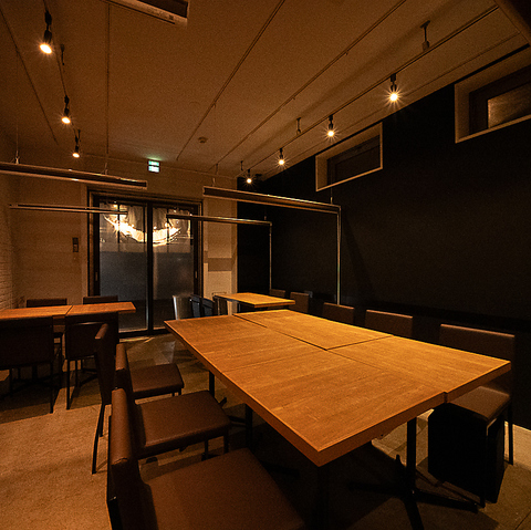 20~30名様で貸切可能◎テーブル席は連結可能で、少人数から大人数までシーンに合わせて柔軟にレイアウト変更ができます。急な人数変更にも対応しやすく、宴会や仲間内の集まり、ビジネスシーンまで幅広く利用可能。落ち着いた雰囲気の中、グループそれぞれに最適な空間をご提供いたします。