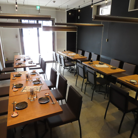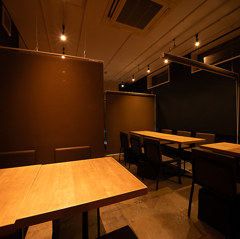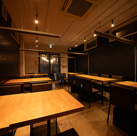 3名様~半個室可能◎落ち着いた灯りが心地よく照らすスタイリッシュな店内は、木目のテーブルと黒を基調とした空間が大人の雰囲気を演出。広々としたレイアウトで、少人数からグループまでゆったり過ごせます。デートや友人との食事はもちろん、仕事帰りの一杯にも最適な上質でリラックスできるダイニング空間です。