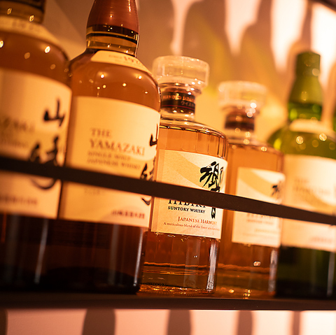 日本が誇るジャパニーズウイスキー「山崎」や「響」をはじめ、香り豊かで奥行きのある味わいを持つ銘酒を多数。柔らかな灯りに照らされた棚に並ぶボトルは、眺めているだけで心躍る存在。お食事とのペアリングはもちろん、ゆったりとグラスを傾けながら味わう贅沢な時間にも最適です。上質なウイスキー体験をぜひご堪能ください。