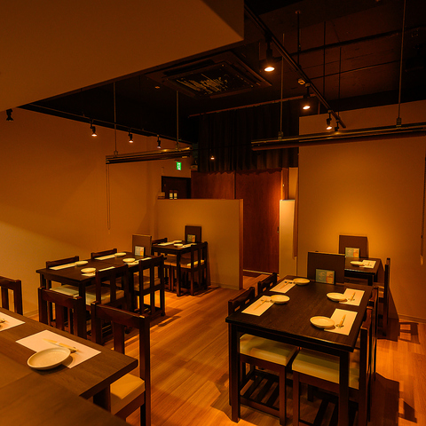落ち着いた雰囲気の店内は、お食事をゆっくり楽しみたい方にも、会話を大切にしたいシーンにも最適。席の配置や照明にもこだわり、居心地の良さを追求しています。友人同士のお食事、デート、接待、宴会まで幅広く対応できる空間づくりで、どんな場面でも自然とくつろげる時間を演出します。