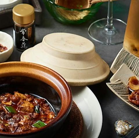 天日干しで旨みを凝縮させたヨシキリザメのフカヒレ姿煮をメインに据えた贅沢なコースです。太い繊維の独特な食感を楽しめるひと皿に加え、信州福味鶏のよだれ鶏や旬の魚介・肉料理、名物の土鍋麻婆豆腐まで、厳選した素材が織りなす中国料理を存分にご堪能ください。
