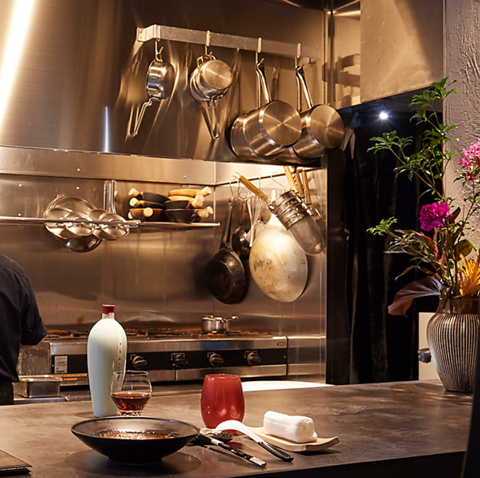 目の前で調理される料理の音や香りが臨場感を演出するカウンター席は、特別なお席。店主との会話も楽しみながら、お一人様での自分へのご褒美や、お連れ様との親密な語らいなど、五感を満たす至高のディナータイムをお過ごしくださいませ。お電話にてご予約承っております。