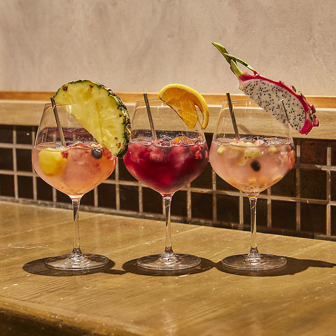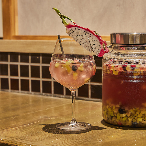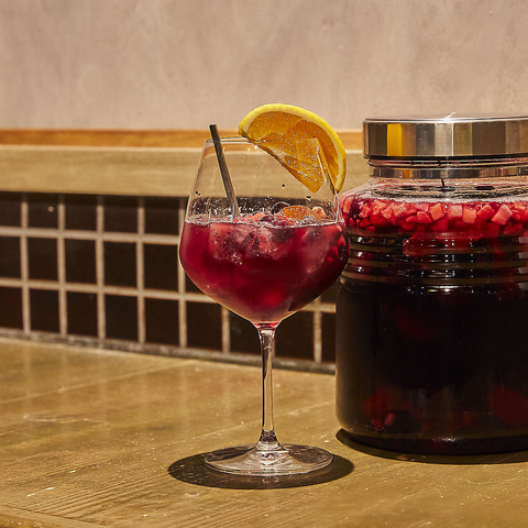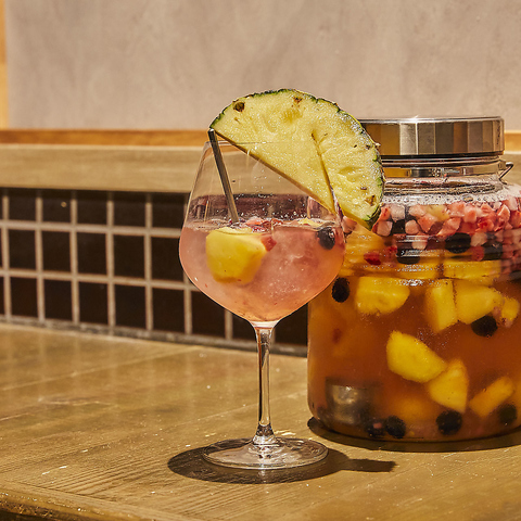 フルーツを漬け込み、使用した見た目もかわいいサングリアをご用意しております!赤、白、ミックスの3種類それぞれに合わせたものになっております。ソーダ割orロックとお好みの割り方でお召し上がりください★女子会、合コン、宴会、誕生日、記念日にぜひオススメです♪お得な飲み放題クーポンもございますのでぜひご利用ください♪