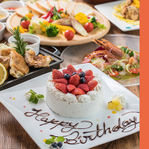 【サプライズプレート】☆お祝いごとなどお任せください♪特製ケーキプレートをご用意しております☆結婚式二次会や歓送迎会、親睦会、お誕生日会など各種宴会でのお祝いごとにぜひお得なクーポンをご一緒にご利用下さい♪プレートにメッセージご希望の際はご予約時にプレートに書くお名前とメッセージをお伝えください♪