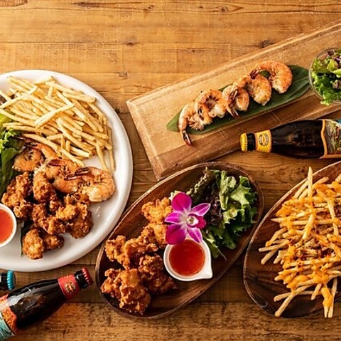 看板メニューの「ハワイアンバーガー」は、ジューシーな肉厚パテと自家製バンズに牛100%のパティを挟んだ本格バーガー。特製のソースがパティの旨味を引き立たせます。他にもガーリックシュリンプやロコモコなど、ハワイのローカルフードを楽しめます♪彩り豊かなプレート料理はボリュームも満点で、南国気分を存分に満喫できます♪