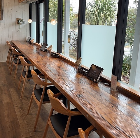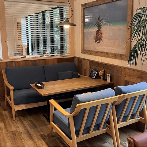 店内はハワイを思わせるお洒落な空間。全98席と広く、お一人様に最適なカウンター席から、ご友人とのランチに便利なテーブル席、ゆったり寛げるソファー席まで完備。広々とした落ち着いた雰囲気は居心地◎で、デートやママ会、お子様連れでの食事など、どんなシーンでもついつい長居してしまう空間です!