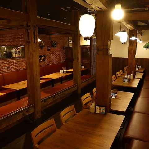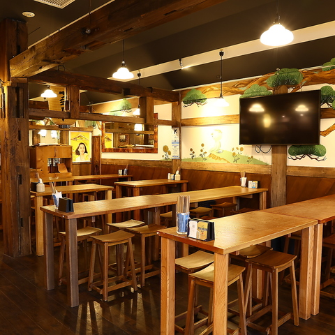 【テーブル席】立川駅北口より徒歩7分。賑わう駅前から少し離れた『昔ながらの食堂』が菊松食堂です。古民家風の店内は木の温もりが感じられます。どこか懐かしい雰囲気と、美味しいお料理をお楽しみ下さい。会社宴会やママさん達の昼宴会はもちろん、女子会や誕生日会などプライベートなお食事でも使い勝手抜群。