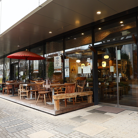 遊歩道に面した開放的なテラス席。ワンちゃんもOK!