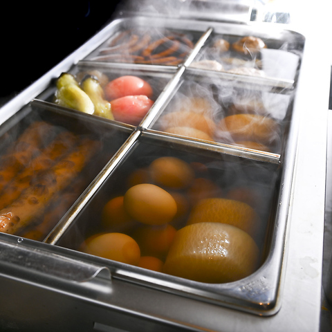 菊松食堂の看板メニューのおでんは、関西のダシが効いたさっぱりとした上品な薄味のおでん。お大根 たまご 練物 こんにゃく など・・ じっくり煮込んだ美味しいおでんを味わえる出汁が良くしみ込んだ極上のおでんをお楽しみ下さい。