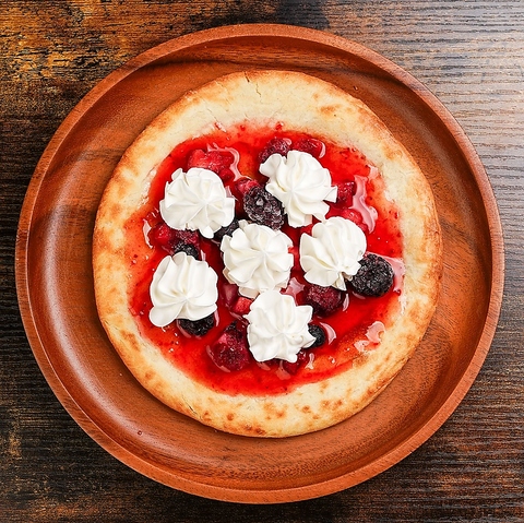 デザートピザ♪サクッと焼いた生地に甘酸っぱいベリー&ホイップをトッピング